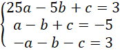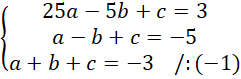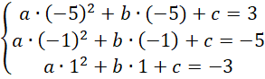 Znajdź równanie paraboli, o której wiadomo, że przechodzi przez punkty A(-5,3), B(-1,-5), C(1,-3).