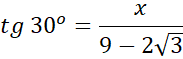 Dwukrotnie skorzystaj z funkcji tangens, aby wyznaczyć długość brakującej podstawy w podanym trójkącie, a następnie szukanego odcinka