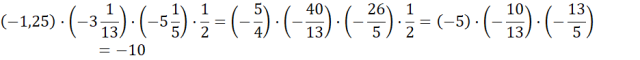 Pamiętaj, iloczyn liczb ujemnych jest dodatni, a iloczyn liczby dodatniej i ujemnej – ujemny. Zamień liczby wmieszane na ułamki niewłaściwe. Skracaj ułamki, gdy tylko to możliwe.