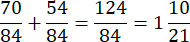 Sprowadź podane ułamki do wspólnego mianownika, dodaj liczniki. Na końcu wynik przedstaw w najprostszej postaci, czyli jako: liczbę mieszaną, ułamek nieskracalny lub liczbę naturalną.