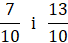 W rozwiązaniu podano przykładowe rozwiązanie – po jednym ułamku właściwym i niewłaściwym. Ułamki nieskracalne składają się z licznika i mianownika, które nie mają wspólnych dzielników różnych od 1. W tym przypadku są to 7 i 10 oraz 13 i 10.