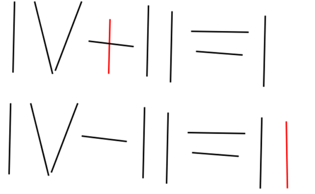 Przestaw jeden patyczek, by równość była prawdziwa.