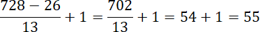 Zbiór liczb naturalnych: od 14 do 736 podzielnych przez 13 – do tego zbioru należy co trzynasta liczba naturalna.