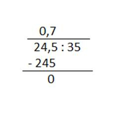 Aby podzielić pisemnie, pomnóż najpierw obie liczby przez taką potęgę liczby 10, aby dzielić przez liczbę całkowitą. Potem postępuj jak z liczbami naturalnymi, zachowując miejsce przecinka.