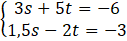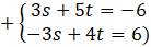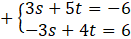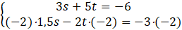 Rozwiązaniem układu równań są liczby s=–2 i t=0