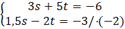 Mnożymy drugie równanie przez –2, aby przy zmiennej s otrzymać przeciwny współczynnik względem pierwszego równania