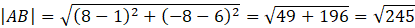 Długości odcinków obliczamy stosujac wzór: