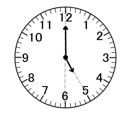 Wskazówka minutowa na godzinie 12-tej dzieli okrąg na połowę, która ma miarę 180°. Godziny od 6-tej do 12-tej dzielą otrzymane półkole na 6 równych części (5 z tych części wyznaczają ramiona kąta utworzonego przez dłuższą i krótszą wskazówkę):