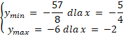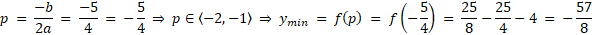 Dla funkcji kwadratowej f(x) = 2x2 + 5x – 4 wyznacz wartości największą i najmniejszą w przedziale