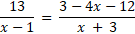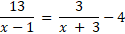 Wyznacz dziedzinę wiedząc, że mianownik musi być różny od zera. Rozwiąż równanie mnożąc na krzyż i skorzystaj z wyróżnika trójmianu kwadratowego aby wyliczyć x.