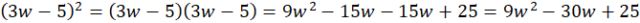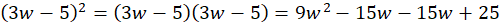 W tym zadaniu przedstaw wyrażenie (3w - 5)² za pomocą sumy algebraicznej.