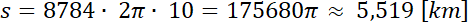 Aby rozwiązać zadanie zacznij od obliczenia, ile pełnych obrotów wykonuje wskazówka w ciągu roku (liczbę dni w roku pomnóż przez liczbę godzin w ciągu dnia pamiętając o latach przestępnych). Następnie oblicz drogę pokonaną przez koniec wskazówki za pomocą wzoru na długość okręgu