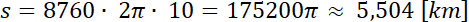 Oblicz długość trasy pokonanej przez punkt na końcu wskazówki minutowej zegara o długości 10 cm w ciągu jednego roku.