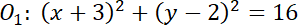 . Znajdź współrzędne środka i długość promienia i zapisz równanie okręgu.