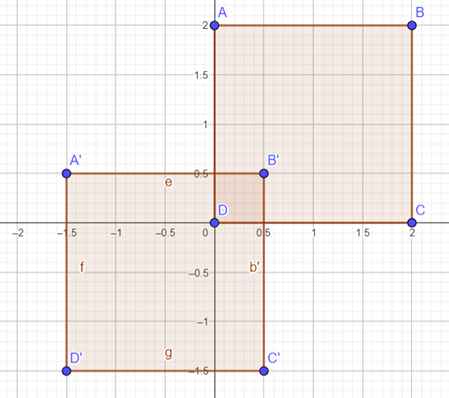 Następnie należy przesunąć każdy punkt o wartość wektora oraz obliczyć długości boków części wspólnej boków kwadratu ABCD i A’B’C’D’.