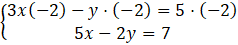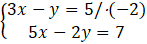 Mnożymy pierwsze równanie przez –2, aby przy zmiennej y otrzymać przeciwny współczynnik względem drugiego równania przy zmiennej y, bo –2×(–1)=2:
