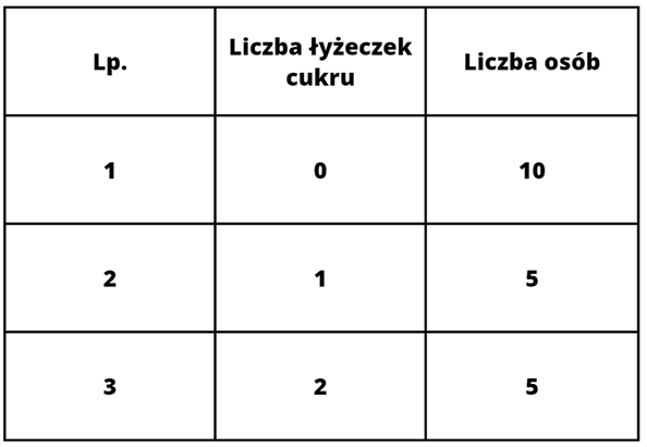 W tym zadaniu przeprowadź ankietę na temat ilości cukru używanego do słodzenia herbaty i opracuj jej wyniki.