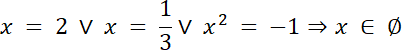 x–2 = 0 v 3x–1 = 0 v x2 + 1 = 0