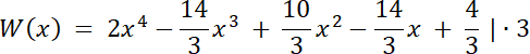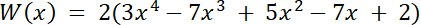 W(2) = 2(3∙(2)4–7∙(2)3 + 5∙(2)2–7∙(2) + 2)