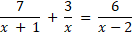 Wyznacz dziedzinę wiedząc, że mianownik musi być różny od zera. Rozwiąż równanie mnożąc na krzyż i skorzystaj z wyróżnika trójmianu kwadratowego aby wyliczyć x.