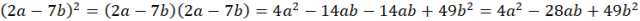 W tym zadaniu przedstaw wyrażenie (2a - 7b)² za pomocą sumy algebraicznej.