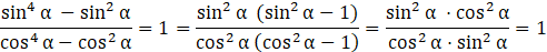 Przemnażamy wyrażenia w zawiasach, a następnie korzystamy z jedynki trygonometrycznej.
