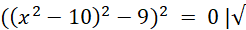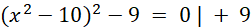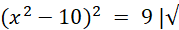 Pierwiastkujemy obustronnie równanie bez rozdzielania na dwa równania ze względu na 0 po prawej stronie. Jeszcze raz pierwiastkujemy obustronnie równanie, aby uzyskać dwa równania kwadratowe, z których możemy uzyskać rozwiązania.