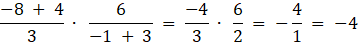 Wykonaj działanie, pamiętając o tym, że iloraz liczby ujemnej i dodatniej daje liczbę ujemną: