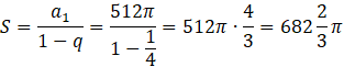 Skorzystaj ze wzoru na sumę wyrazów nieskończonego ciągu geometrycznego i oblicz sumę pól wszystkich pierścieni kołowych.