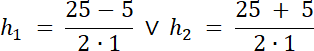 h2–25h + 150 = 0