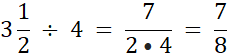 Następnie podziel wynik przez 4. Aby podzielić ułamek przez liczbę naturalną, musisz pomnożyć mianownik tego ułamka przez liczbę naturalną.