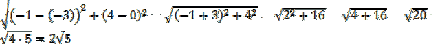 W celu obliczenia odległości między punktami A(xa, yb) i B(xb, yb) skorzystaj z następującego wzoru: |AB| =