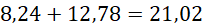 Suma liczb 8,24 i 12,78 jest większa od sumy liczb