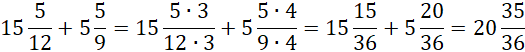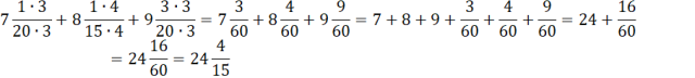 Wykonaj działania dodawania. Aby dodać do siebie ułamki, sprowadź je do wspólnego mianownika, mnożąc licznik i mianownik przez tę samą liczbę.