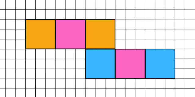 Ściany oznaczone jako pomarańczowe i niebieskie będą leżeć naprzeciw siebie, ponieważ są połączone jedną ścianą. Ściany fioletowe to pozostałe 2 ściany, które muszą być naprzeciwko siebie.