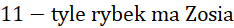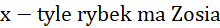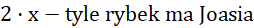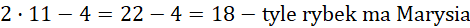 . Joasia ma w sumie 18 rybek, a więc układasz równanie