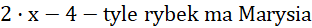 . Marysia ma 4 rybki mniej od Joasi, więc zapisujesz jej liczbę rybek jako