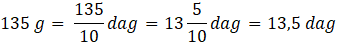 Najpierw zamień wagi figi na dekagramy, zapisując ułamek o mianowniku równym 10 (bo 1 dag = 10 g) i liczniku równym ilości gramów. Następnie wyłącz całości i zamień liczbę mieszaną na ułamek dziesiętny. Dodaj dwa ułamki dziesiętne.