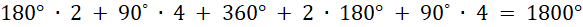 Dodaj do siebie miarę kątów z dwóch trójkątów, trzech czworokątów plus dwa katy półpełne.