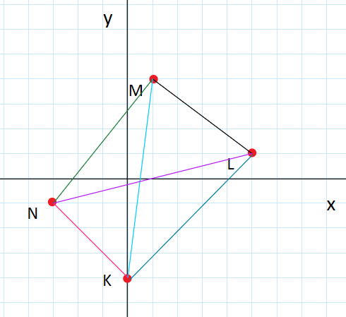 Zaznacz podane punkty w układzie współrzędnych i oblicz długości wszystkich powstałych odcinków po połączeniu punktów ze sobą.