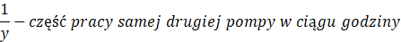W tym zadaniu musisz obliczyć, w jakim czasie pierwsza pompa sama opróżniłaby zbiornik, wiedząc, że pierwsza pompa, pracując samodzielnie, opróżnia zbiornik w czasie o 3 godziny dłuższym niż druga pompa. Pewnego dnia pierwsza pompa pracowała samodzielnie przez 1,5 godziny, a następnie opróżnianie zbiornika dokończyły obie pompy, pracując razem przez 5,5 godziny.