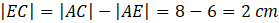 Oblicz długość odcinka EC. Zauważ, że jest to różnica długości boku AC i AE.