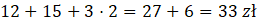 Jeden oscypek w dolinie Chochołowskiej kosztował 3 zł. Klasa składająca się z 12 chłopców i 15 dziewczynek kupiła sobie oscypki. Na wycieczce było również 3 nauczycieli pilnujących, którzy kupili sobie po dwa oscypki. Oblicz, ile sprzedawca oscypków zarobił.