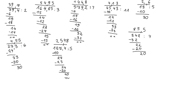 Podziel pisemnie. Pamiętaj, by w wyniku postawić przecinek w odpowiednim miejscu.