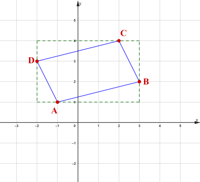W tym zadaniu musisz obliczyć pole równoległoboku o wierzchołkach A = ( -1, 1 ), B = (3, 2), C = (2, 4), D = ( -2, 3 ).