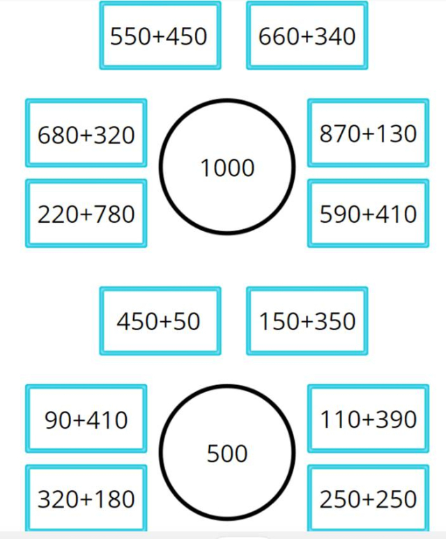 Uzupełnij diagramy tak, aby otrzymać sumę podaną w kółku.