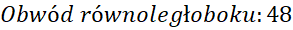 W następnym kroku oblicz odwód równoległoboku sumując długości wszystkich boków.