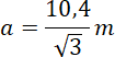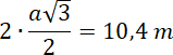 Przekrój poziomy auli przedstawiono na rysunku – z niego możesz odczytać, że podwojona wysokość trójkąta foremnego o boku a, który buduje sześciokąt to 10,4 m. Oblicz długość boku sześciokąta: