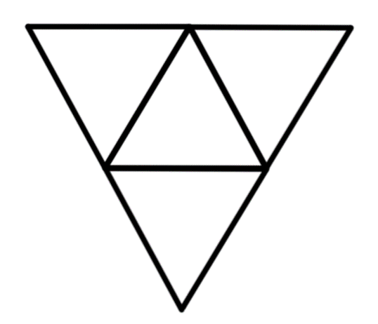 Ostrosłup o każdej krawędzi równej długości to czworościan foremny. Narysuj siatkę składającą się z czterech trójkątów równobocznych o boku długości 5 cm.