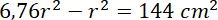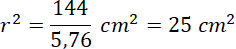 Pole przekroju osiowego to pole trójkąta o podstawie 2r i wysokości 12 cm: